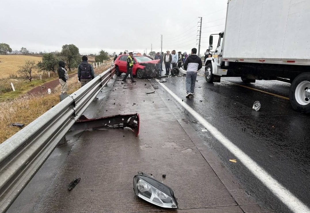 Así también la autopista en el trayecto comprendido entre el Tejocotal, municipio de Acaxochitlán y San Alejo, una camioneta marca Jac, chocó contra la barra de contención.