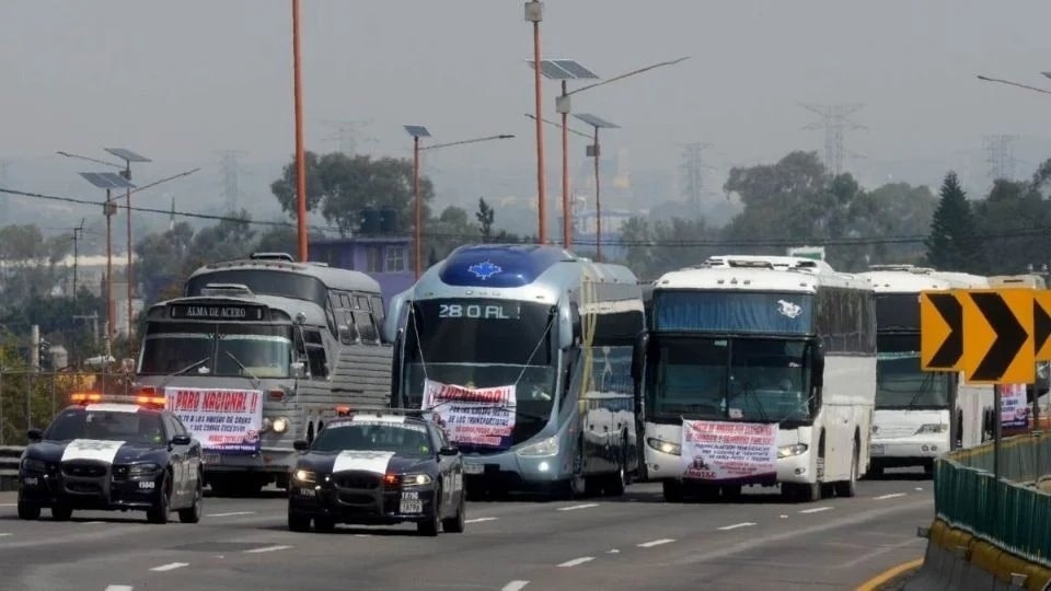 al cierre convocado por transportistas para exigir la aparición con vida de Fernando Galindo Salvador, operador del transporte público desaparecido en el municipio de Jilotepec, Estado de México.
