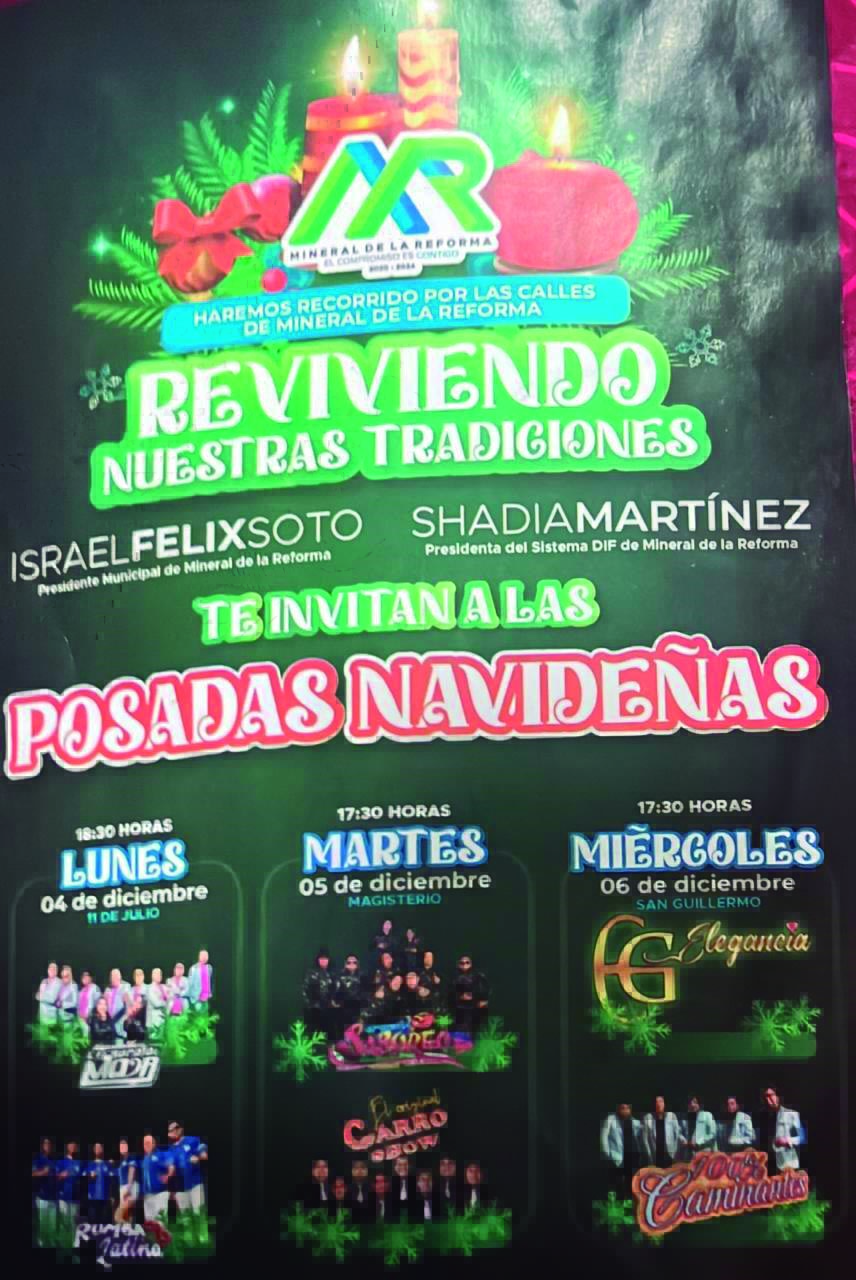 Dentro de la propaganda oficial, el cartel hace referencia al inicio de las posadas navideñas que arrancaron este 4 de diciembre en la colonia S 11 de Julio, posteriormente, Magisterio, San Guillermo, La Calera, Chacón, Saucillo, Chavarría, Militar, Azoyatla, Parque Siglo XXI y finalizar el 14 de diciembre, en la Plaza de la Justicia.