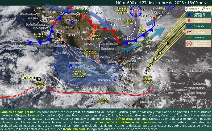 Conforme al pronóstico extendido de 96 horas, que emitió el Servicio Meteorológico Nacional (SMN), un aproximado de 17 entidades experimentarán bajas temperaturas a partir del martes 28 de octubre, ocasionadas por el Frente Frío número 11.