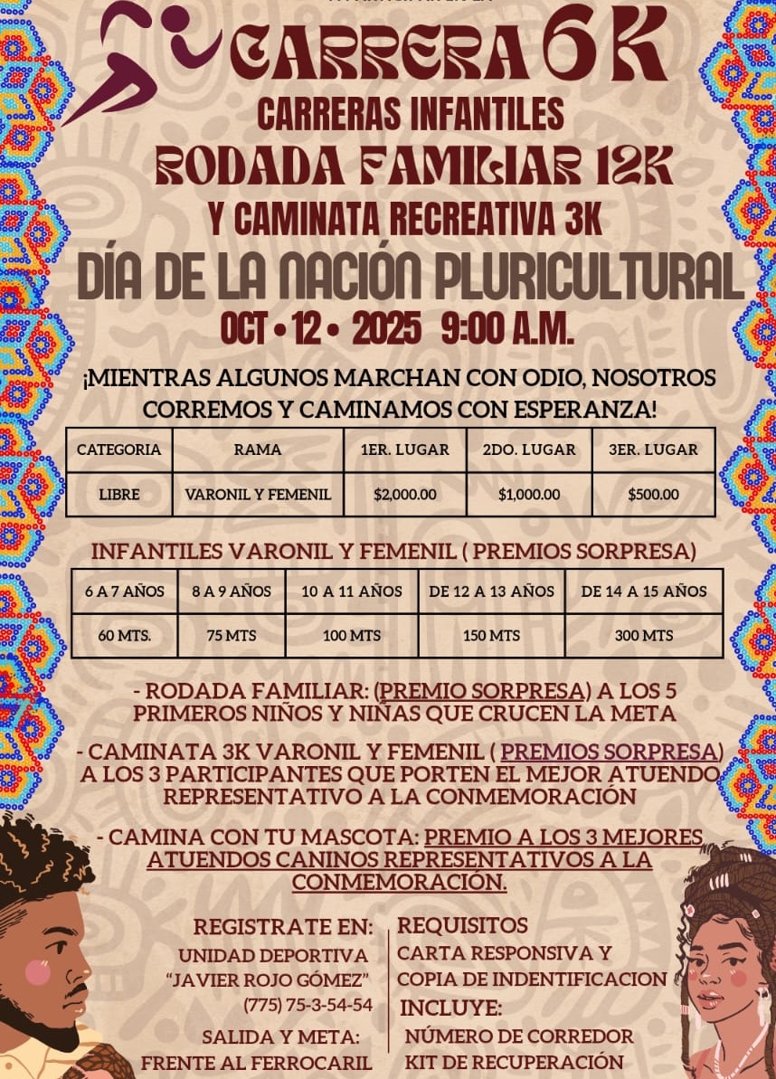 La actividad principal es una carrera atlética de 6 kilómetros categoría libre, ramas femenil y varonil, con premiación en efectivo para primero a tercer lugar (2 mil pesos, mil pesos y quinientos respectivamente), Inscripciones gratuitas que cierran mañana sábado a las 15:00 horas en la unidad deportivas oficinas de la Unidad Deportiva “Javier Rojo Gómez”.