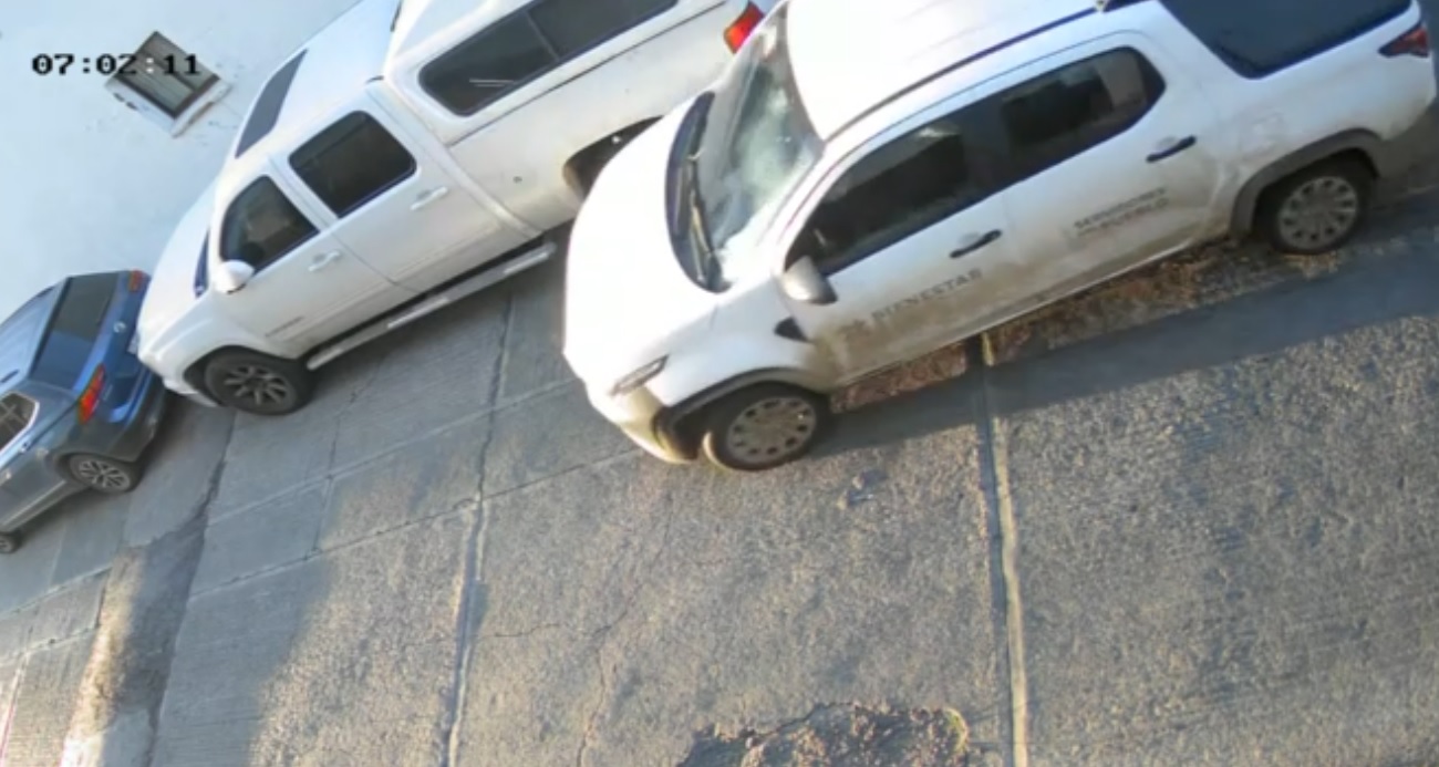Aunque algunos vecinos, también circularon en grupo de WhatsApp como la camioneta de la dependencia del Bienestar, presentaba un fuerte golpe frontal por lo que la defensa casi la traía colgando.