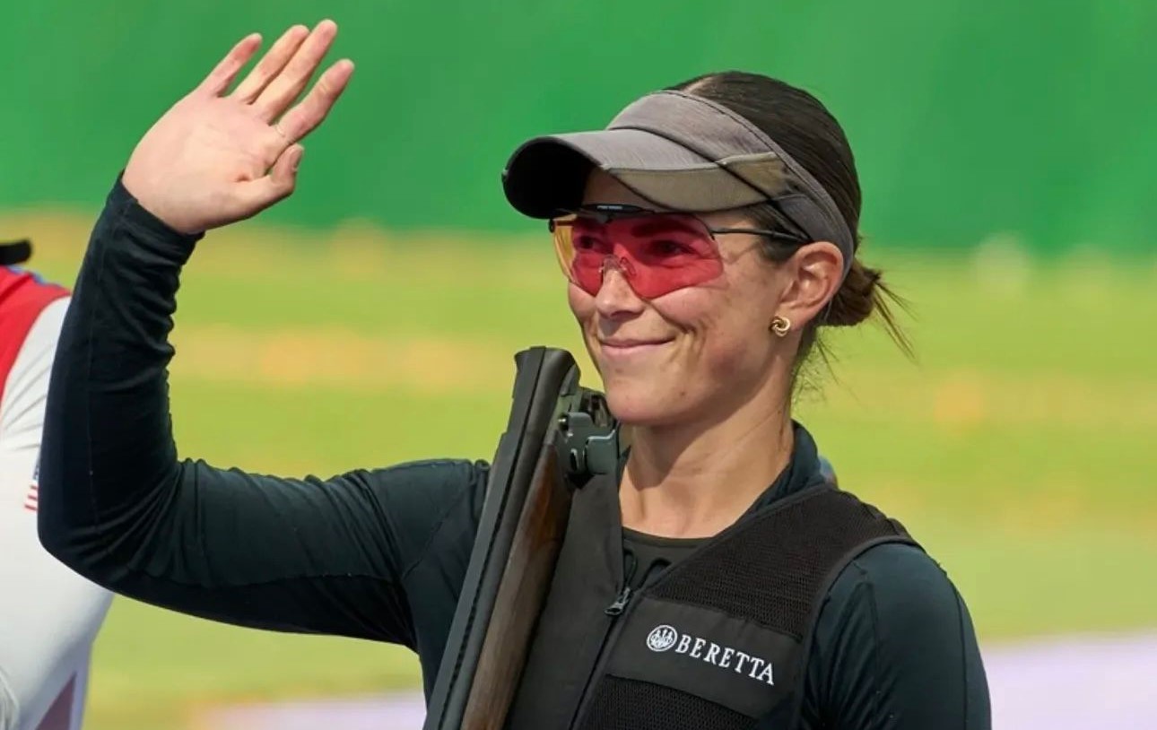 La dos veces olímpica subió al podio tras lograr la medalla de plata en la final de la prueba skeet femenil de la magna justa que se lleva a cabo en Atenas, Grecia.