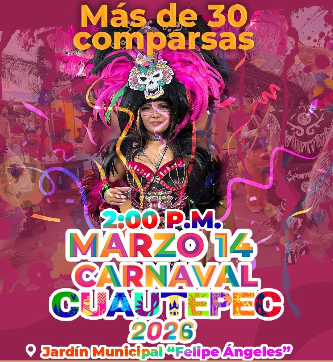 El Carnaval Cuautepec 2026 busca consolidarse como una de las festividades representativas del municipio, al reunir expresiones culturales, música y tradiciones en un ambiente pensado para el disfrute de las familias.