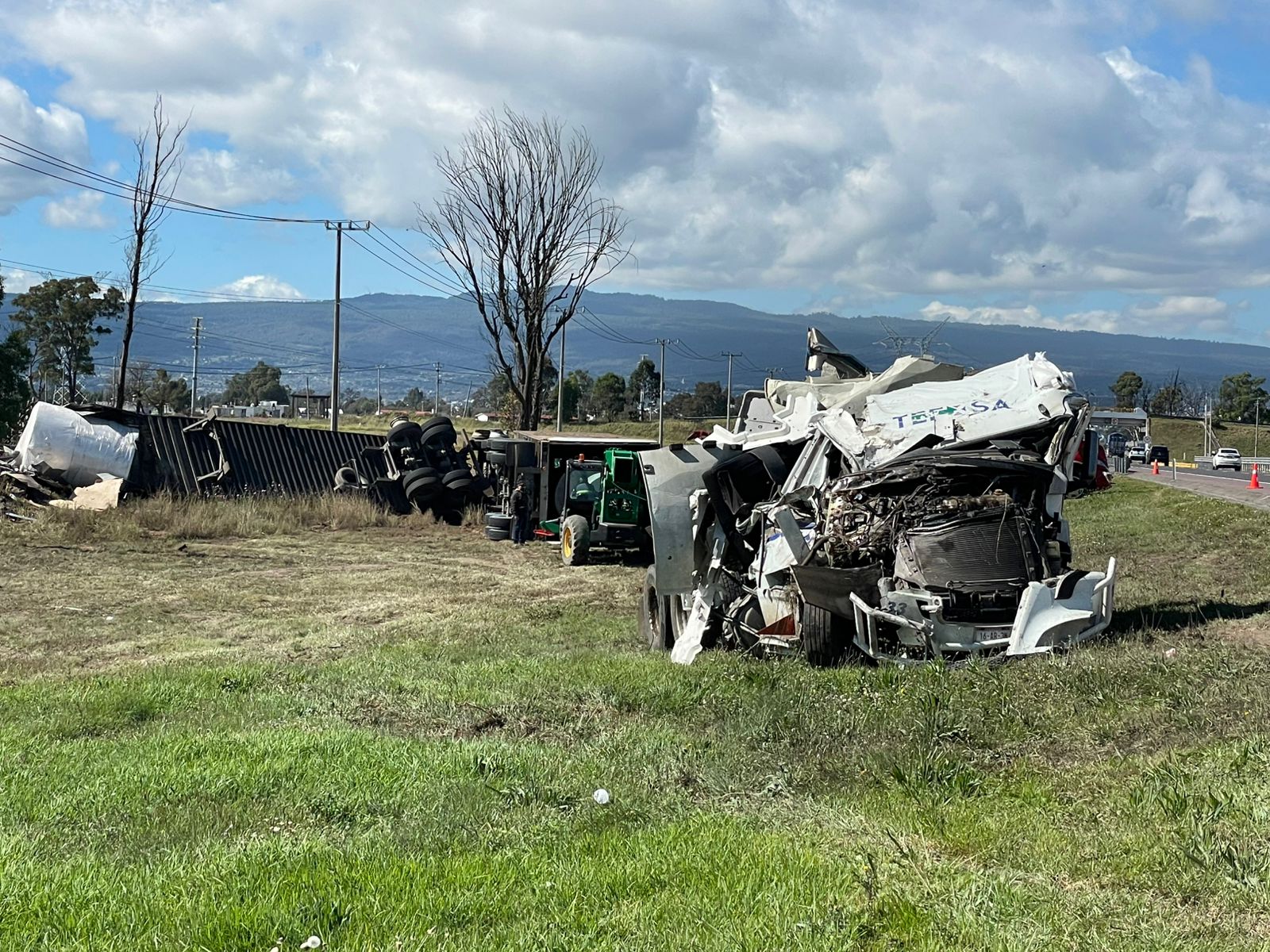 De acuerdo con los primeros reportes, las pesadas unidades se impactaron de frente y una de ellas, que llevaba una “salchicha”, volcó.