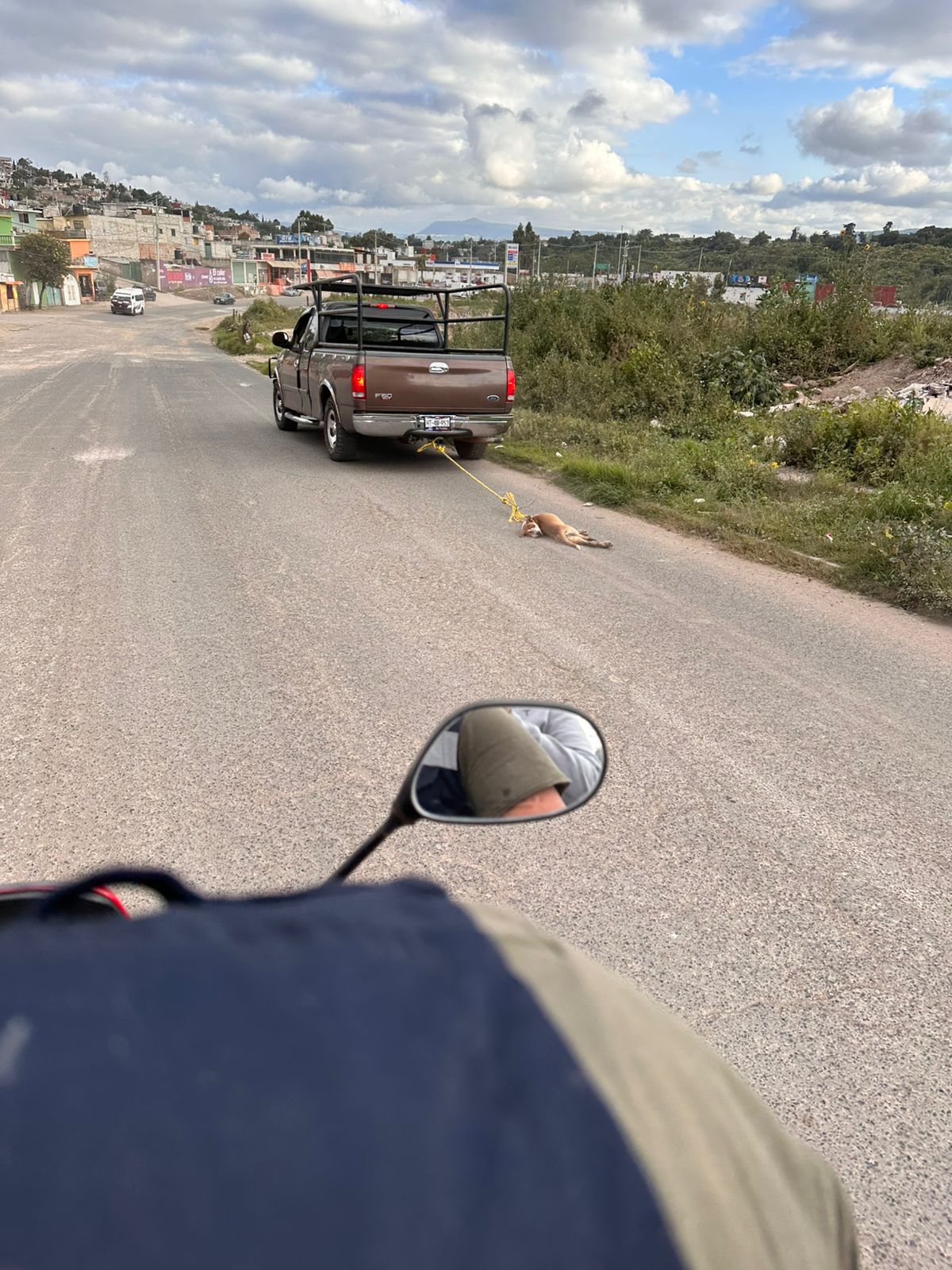Causó indignación entre los cibernautas la imagen de un conductor de una camioneta que amarró a un perro a la defensa de la unidad y lo llevaba arrastrando en el pavimento. La imagen fue captada en la carretera intermunicipal Tulancingo- Cuautepec, donde se puede observar que el lomito ya prácticamente sin vida, fue arrastrado varios metros. En redes sociales trascendió que el dueño de la camioneta es propietario de un local de muebles rústicos, en la Plaza San Francisco. La policía ya busca su paradero.