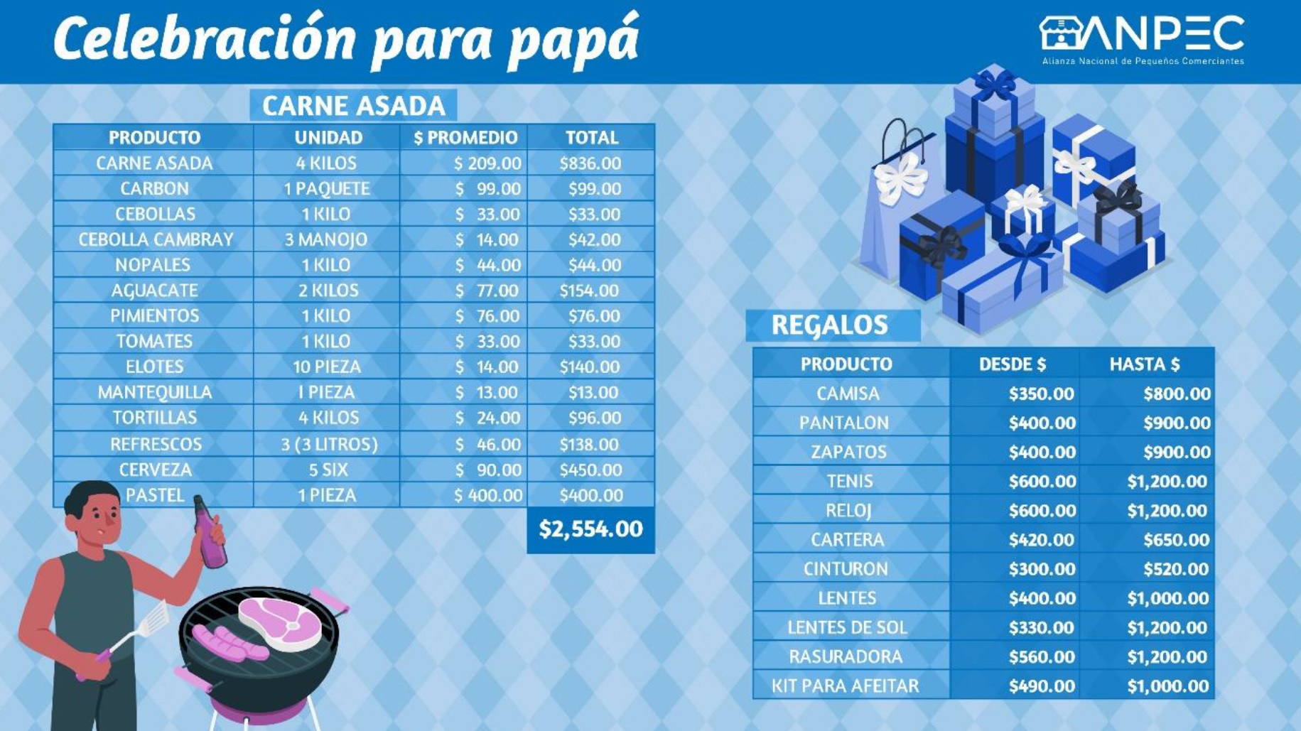 La Alianza Nacional de Pequeños Comerciantes (ANPEC), señaló que para la celebración del Día del Padre el 16 de junio, las familias tendrán un gasto promedio de 3000, pesos tanto en alimentos como en regalos.