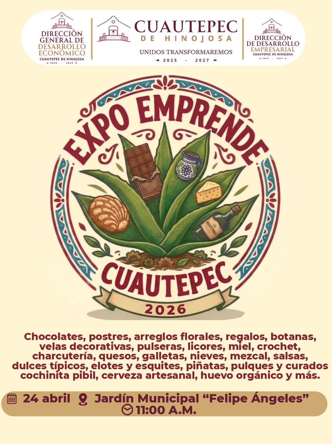 El municipio de Cuautepec de Hinojosa realizará este viernes la Expo Emprende 2026, un evento que busca impulsar la economía local y fortalecer a emprendedores de la región mediante la promoción de sus productos y servicios.