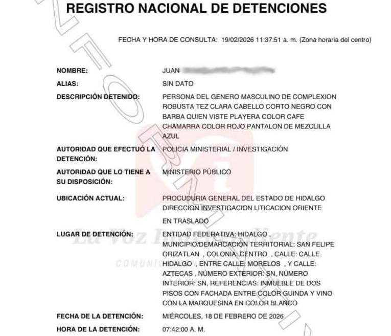 En el Registro Nacional de Detenciones el servidor público, fue capturado en la céntrica calle de Hidalgo a la altura de un inmueble de dos niveles con fachada en tonos guinda.