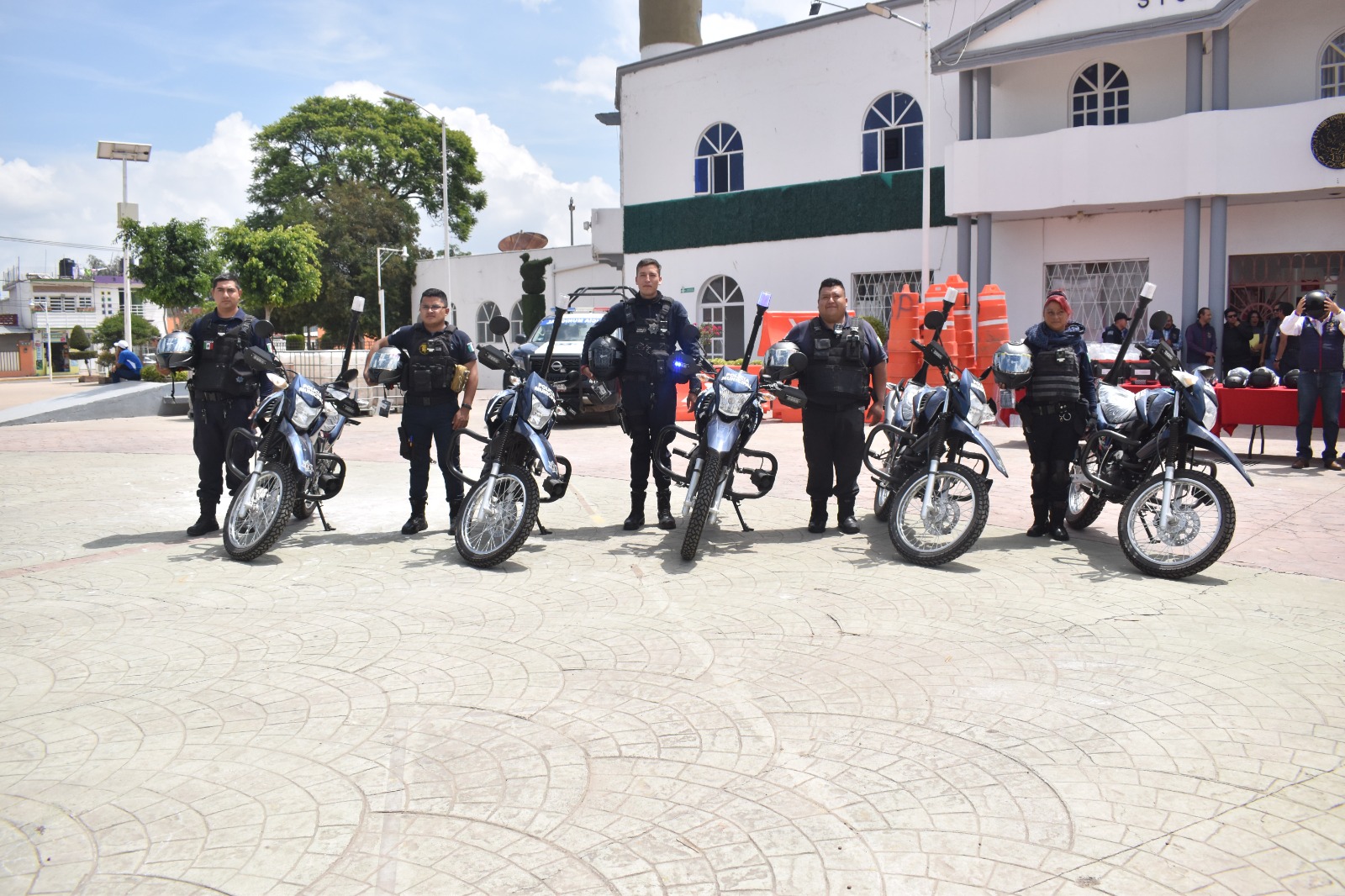 La Dirección de Seguridad Pública de Santiago Tulantepec recibió de la administración municipal, cinco motopatrullas y diverso equipo, con una inversión de poco más de dos millones de pesos.