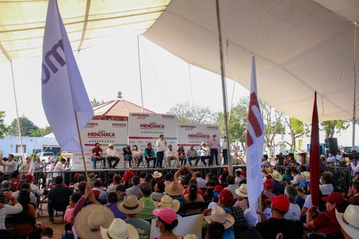 “Este día, venimos abrazando la esperanza, que en cada rincón y en cada municipio del estado, en cada comunidad exista esa conciencia de tomar en nuestras manos el presente y futuro, lo tenemos muy cercano en un ejercicio democrático y pacífico el 5 de junio, porque vamos a demostrar que las encuestas y llenar una plaza pública se traduce en la posibilidad de tener un gobierno distinto y de aterrizar en Hidalgo la Cuarta Transformación”, enfatizó Menchaca Salazar.