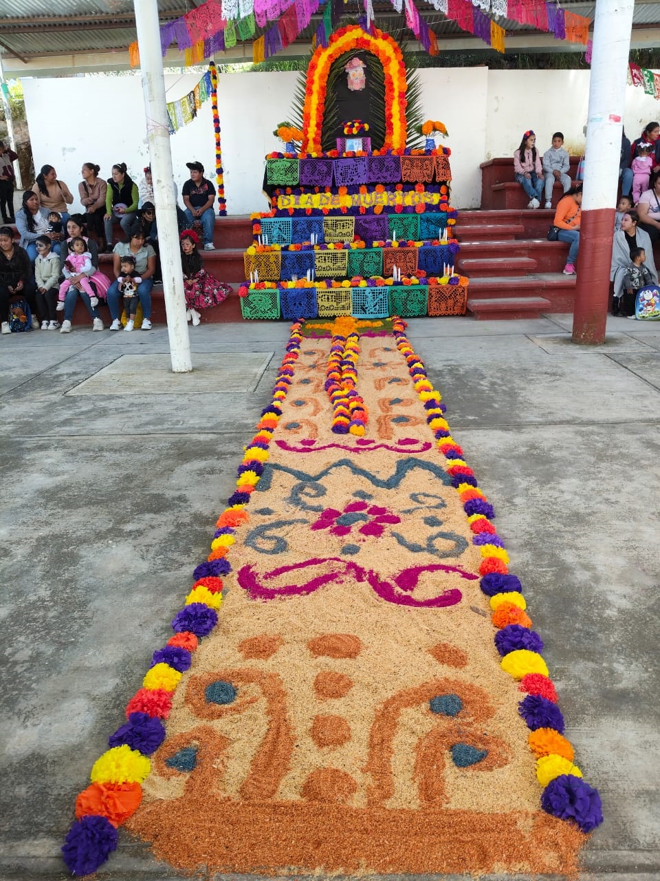 Este año con el trabajo en conjunto de dirección, maestros, alumnos, comité de padres de familia de dicha primaria, se logró realizar un programa especial, con calaveritas y lectura de leyendas tradicionales del lugar y la época, así como un desfile de caracterizaciones, representando personajes típicos de las leyendas. Después de su presentación del altar, también convivieron con alimentos tradicionales de la época y del lugar.