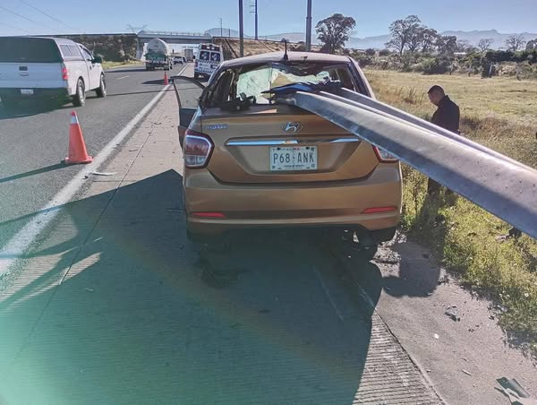 Una mujer se debate entre la vida y la muerte, luego de que el vehículo en que viajaba, un Honda tipo Hybrid, chocó contra la barra metálica de contención, misma que literalmente se incrustó a lo largo del vehículo.