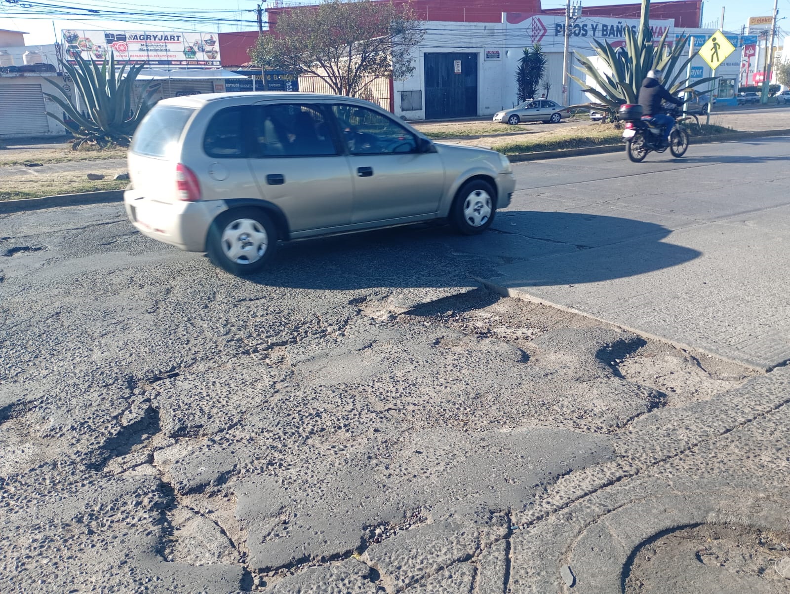 Al menos cuatro baches de grandes dimensiones, ya generaron afectaciones en al menos dos vehículos en el lapso de dos semanas. Estos hundimientos, se encuentran a la altura de los juzgados (antigua presidencia municipal) y frente a tienda de autoservicio.