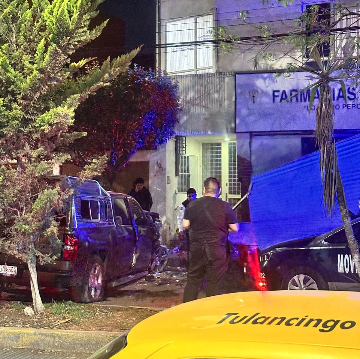 El conductor de una camioneta se llevó tremendo susto al impactar la camioneta que conducía, contra la fachada de una farmacia de una conocida cadena, cerca de las 24 horas del domingo 8 de marzo, en Jardines del Sur, en Tulancingo.