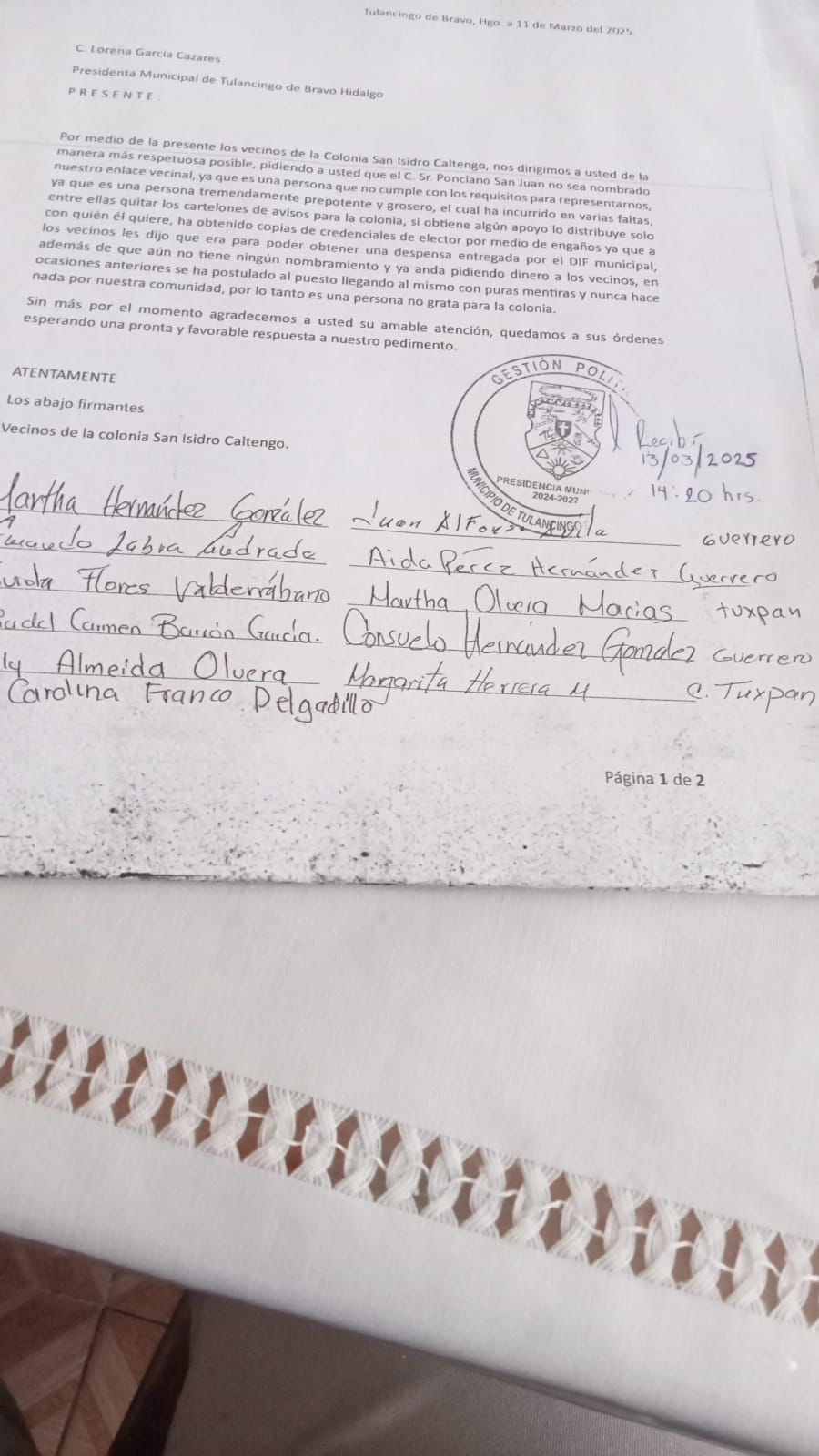 Habitantes de la colonia Caltengo de Tulancingo, dieron a conocer su inconformidad por la designación del Enlace Vecinal de nombre Ponciano, toda vez que, en dicha demarcación, el pasado dos de marzo no se llevó a cabo la votación, para ser elegido democráticamente.