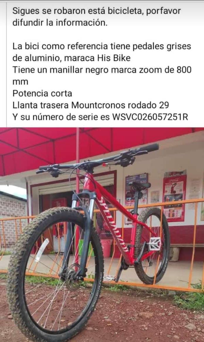 Refirió que uno de los individuos, le apuntó con un arma de fuego y a la vez cortó cartucho. “Me dijo, que me vez pen…y luego me agaché a levantar mis guantes, se jaló el de la moto, más adelante subió a su compañero, cargaron mi bicicleta y se alejaron”.