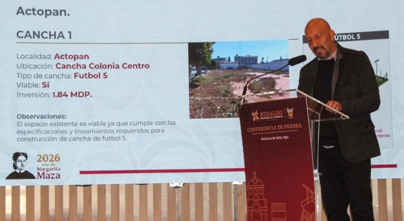 Hidalgo será beneficiado con el programa Mundial Social, una iniciativa impulsada por el Gobierno Federal con motivo de la Copa del Mundo FIFA 2026, que busca generar nuevos espacios deportivos para la población.