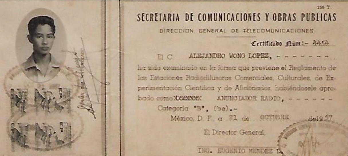 Más allá de su faceta pública, Alejandro Wong López fue un hombre que dedicó su vida a la comunicación, pues desde niño dejo ver sus habilidades detrás de un micrófono. Fue uno de los primeros locutores en recibir la Licencia tipo A, expedida por la Secretaría de Comunicaciones y Obras Públicas. En ese entonces contaba apenas con 16 años de edad y el certificado le fue entregado el 21 de octubre de 1957.