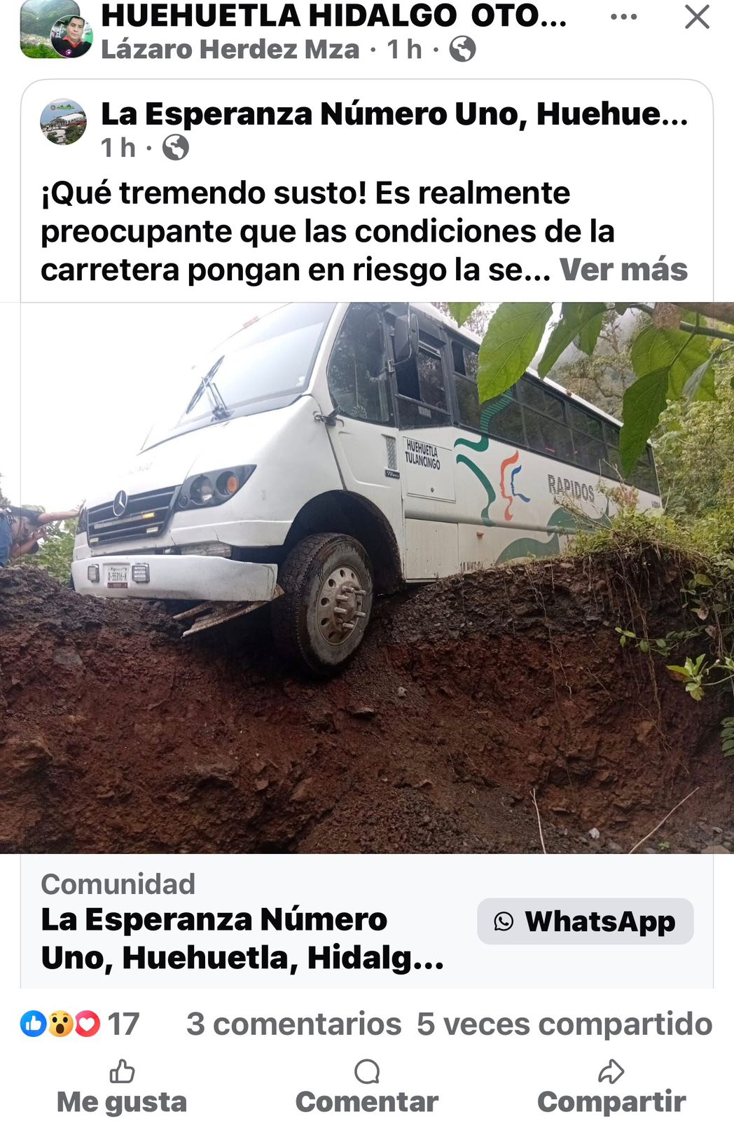 Indígenas de la comunidad La Esperanza I, en el municipio de Huehuetla, acusaron abandono por parte de las autoridades municipales a cago de Yaralen Cortés Mendoza, situación que ha provocado que esta localidad se encuentre prácticamente incomunicada debido al grave deterioro de la carretera de acceso.