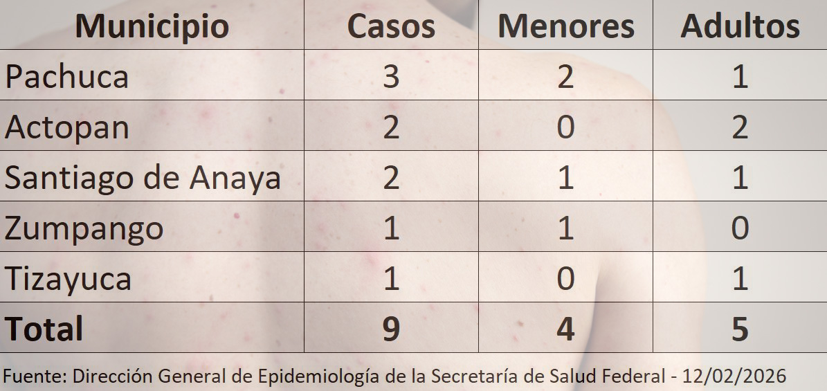 Se registraron el octavo y noveno casos de sarampión en el estado de Hidalgo, por lo que autoridades sanitarias reiteraron el llamado a reforzar la vacunación, que durante el mes de enero alcanzó 29,788 dosis.