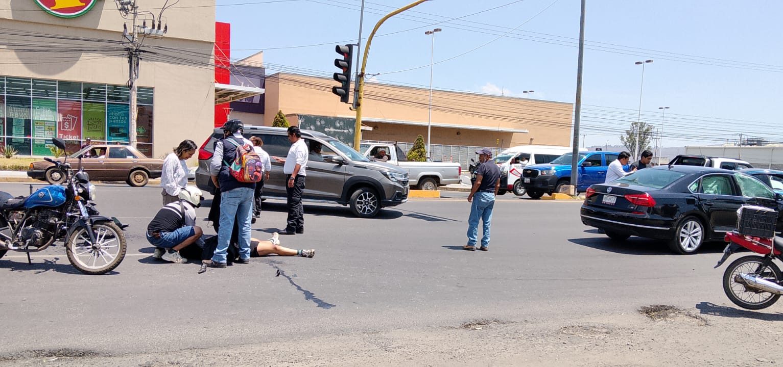 Más tarde, cerca de las diecinueve horas, a la altura del semáforo de San Francisco Plaza, un joven de aproximadamente veinticinco años fue impactado por un vehículo, lo que provocó que perdiera el control de la motocicleta y cayera sobre la cinta asfáltica. El lesionado fue trasladado al Hospital General de Tulancingo debido a los golpes contusos que presentó.