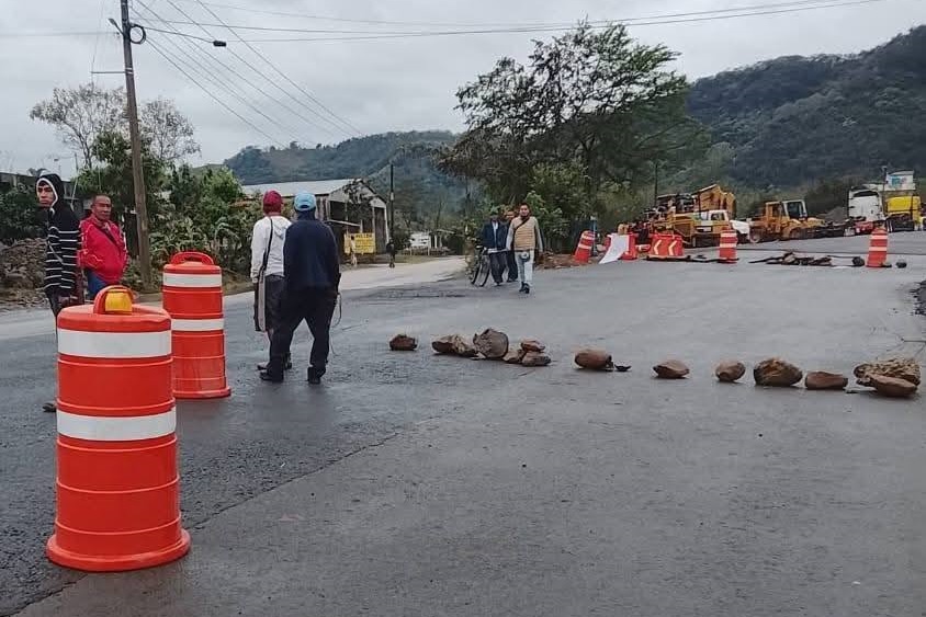 Pobladores y campesinos de la comunidad de Huextetitla, en el municipio de San Felipe Orizatlán, mantienen bloqueada la carretera Tamazunchale–Álamo, en protesta por la falta de pago tras la afectación de terrenos utilizados para la ampliación de esta vía.