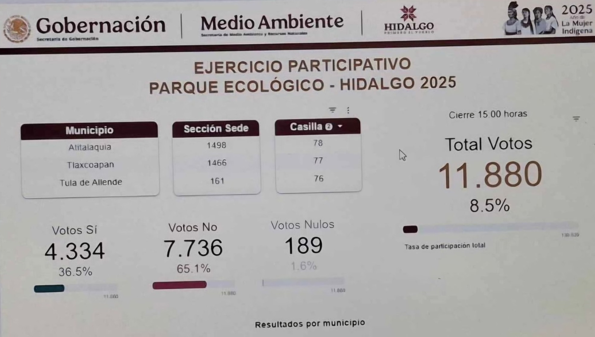 Además, se registraron 189 votos nulos. Quienes votaron en contra fueron principalmente pobladores de Atitalaquia y Tlaxcoapan, mientras que los votos a favor provinieron, en su mayoría, de habitantes de Tula.