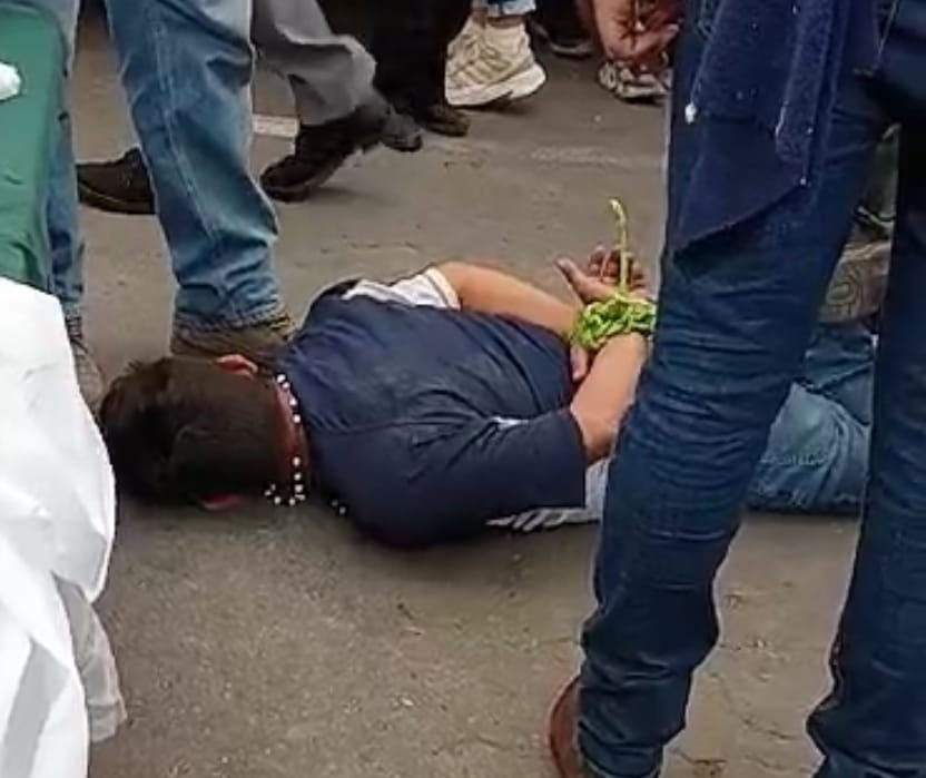 Fue sometido por alrededor de 10 personas, quienes lo derribaron y lo ataron de las manos, además de que le propinaron algunos golpes, ante la expectación de la peatones y automovilistas que transitaban por esta zona.