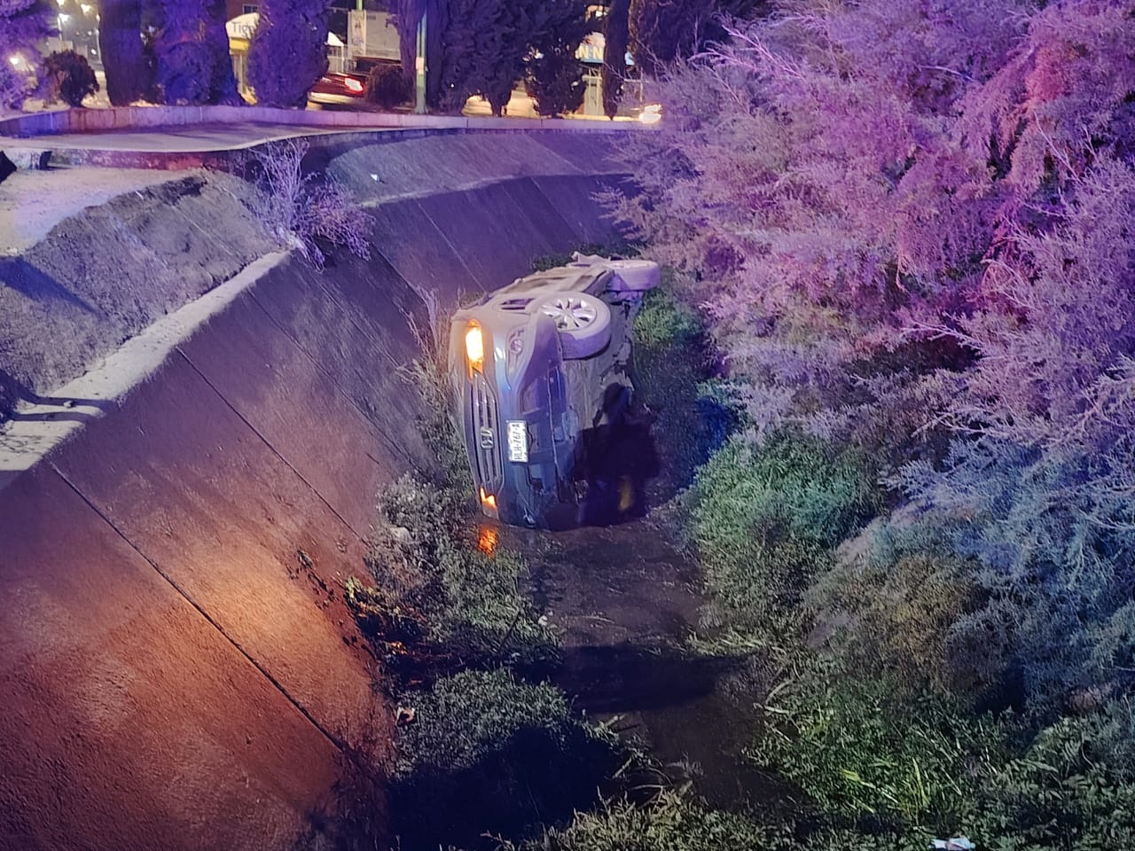 El conductor de la camioneta, perdió el control del volante, frente a un conocido restaurante huasteco y salió de la cinta asfáltica, para dirigirse terminar en el dren San Basilio y caer sobre su costado derecho, luego de un vuelco.
