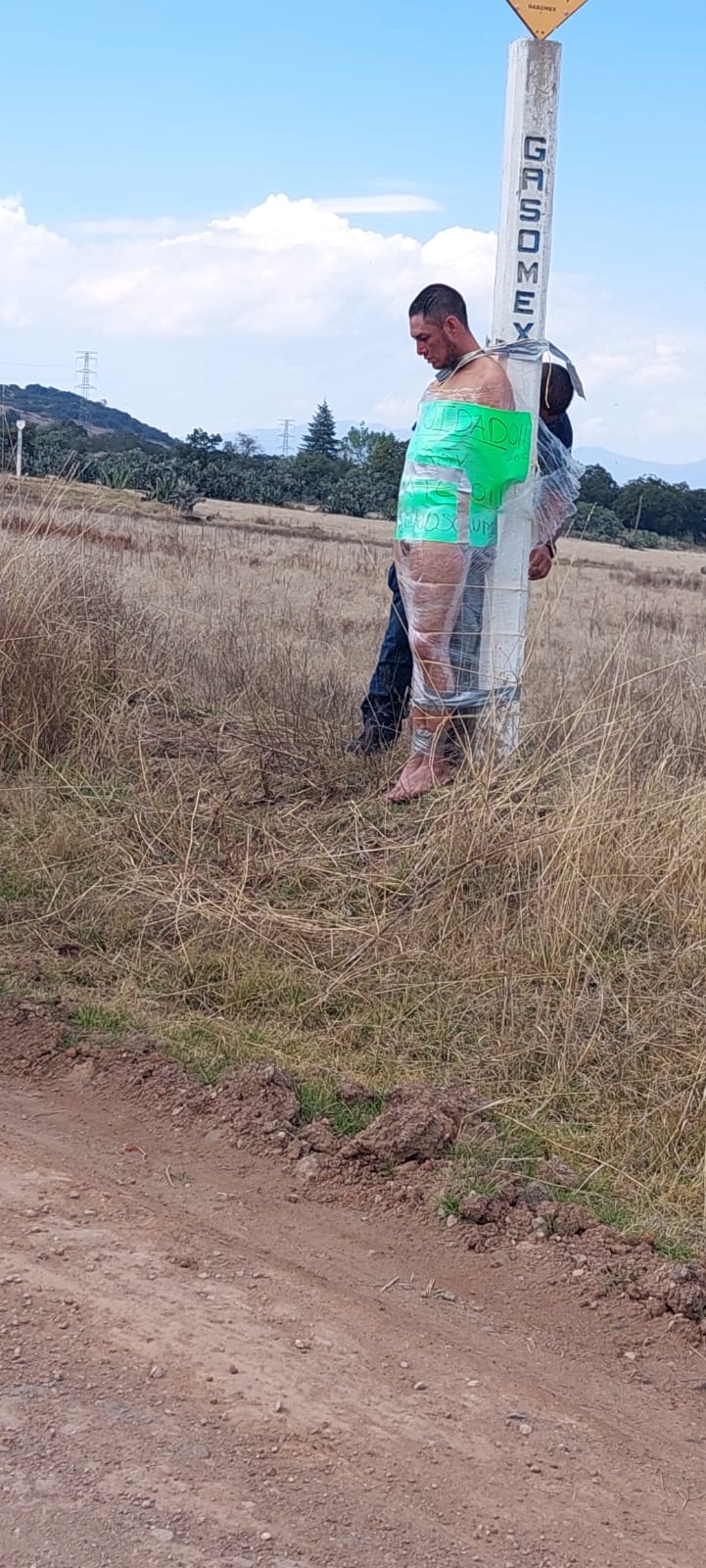 Vicente T.M. fue capturardo habitantes de esta zona, tras intentar meterse a una casa y tras quitarle sus ropas, fue atado a un poste de concreto de una línea de ductos de una gasera.