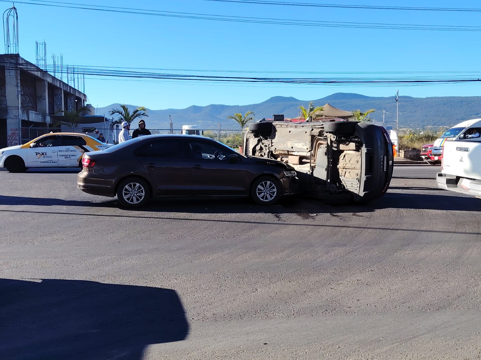 Sin embargo, mientras los demás autos de los carriles centrales se detuvieron, el conductor del otro automóvil involucrado, un Volkswagen Jetta, conducido por un hombre, no hizo alto e impactó a la camioneta, por la parte lateral central, provocando que se vocara y quedara recostada sobre su costado derecho.